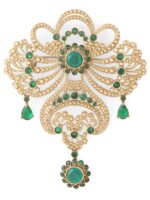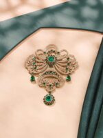 The design of Amaze Allure presents a stunning fusion of ornamental motifs and the striking presence of studs. Intricately crafted through the delicate manipulation of wire pieces, this brooch showcases an array of captivating natural patterns that exude timeless allure. Strategically placed studs introduce a dynamic contrast, infusing the piece with an unexpected modern edge. With meticulous precision, the ornamental motifs display a symphony of curves and lines, forming an intricate visual tapestry that pays homage to the beauty of detail. The studs, in contrast, add depth and character to the overall design, enhancing its captivating charm.