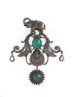 Paying tribute to elephants, symbolizing wisdom and strength, the Behtereen Haathi Brooch incorporates vibrant red gemstones for a touch of energy. With its enduring design, it becomes a cherished accessory, celebrating personal style and significance.
