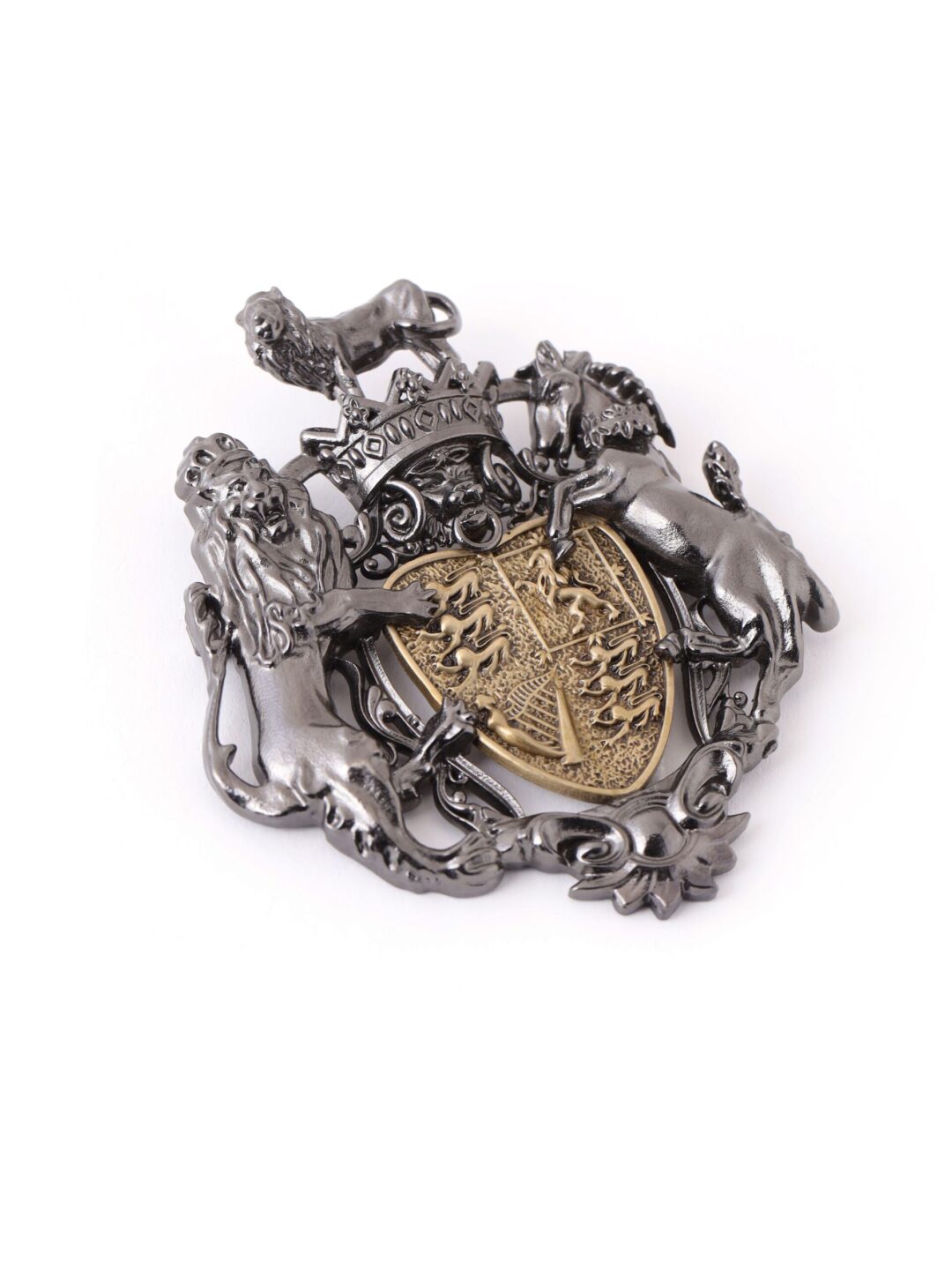 This design is symbolic of the British cap badge. On top, there’s the crown, while on both sides, one could see a lion, the envoy of royalty and a horse that showcases determination.