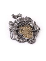 Exhibiting the beautiful details, this brooch surely strikes differently. The outer coating and creatures are all brass metal which may seem thicker. At the center, there’s copper-like tinted metal which enriches an even polished look.