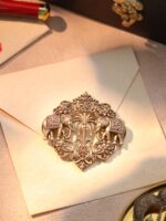 The Elephant Royale Brooch embodies grandeur, prosperity, and heritage elegance. Crafted in antique-finished brass, it features two finely detailed elephants standing beside a stylized palm tree, framed with elaborate floral and scrollwork motifs. The intricate craftsmanship highlights timeless artistry, making it a distinguished piece for ceremonial and festive occasions. A statement accessory for grooms and men of refined taste, this brooch carries a powerful aura of tradition and noble charm.