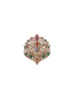 Make a statement with our eye-catching gem-adorned brooch. Featuring a myriad of colorful gems set in gold, this intricate accessory exudes sophistication, adding an elegant touch to any ensemble.