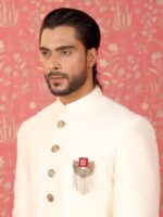 Embark on a whimsical journey with the “Jadui Naginey Brooch.” This enchanting accessory showcases an intricately designed scene of two playful elves gracefully dancing. Crafted with great attention to detail, the brooch captures the magic and charm of these mythical beings. Adorned with a sparkling green gemstone, it radiates a captivating aura, symbolizing the magic of the forest. Let the Brooch be a delightful expression of your inner wonder, adding a touch of enchantment to your style and inspiring you to embrace the joy of imagination and fairy tales.