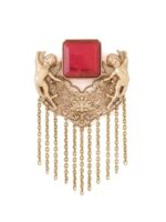 The Brooch design is a celebration of the captivating allure of elves. Inspired by their graceful movements and mythical charm, the scene captures their playful dance. The intricately sculpted brooch reflects the elves’ whimsical nature and endearing spirit. The sparkling green gemstone represents the magic of the forest, where these mystical beings thrive. The brooch is an invitation to embrace the enchantment of fairy tales and ignite the spark of imagination that resides within each of us.