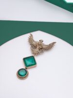 The Brooch celebrates the mythical bird’s spirit of rebirth. Inspired by ancient tales, the brooch captures the phoenix mid-flight, wings ablaze with fiery determination. Intricate detailing mirrors its elegant plumage, symbolizing grace amid adversity. The brilliant green gemstones represent the phoenix’s blazing glory, reflecting resilience from challenges. Each aspect of the brooch embodies the essence of a phoenix’s timeless presence, inspiring wearers to face trials with courage and emerge stronger.