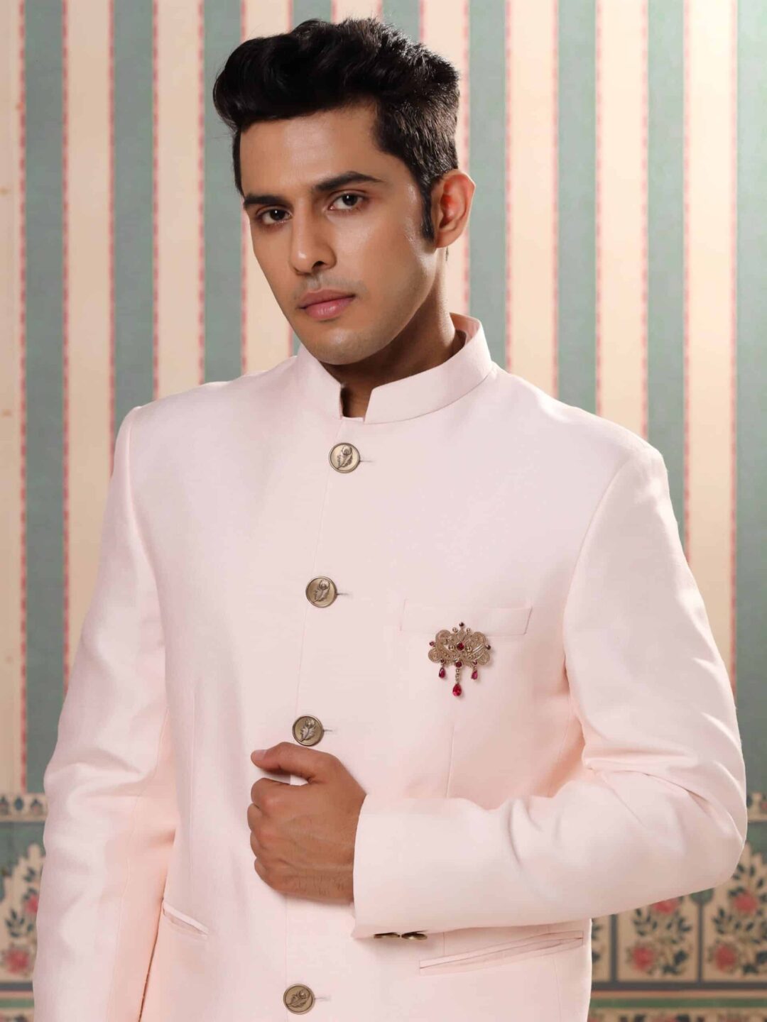 The brooch features an intricate and ornate design that serves as the canvas for beautifully set diamond studs. The superior craftsmanship and attention to detail create a visual masterpiece that captures attention instantly.