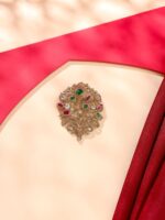 Indulge in luxury with our handcrafted brooch adorned with vibrant gemstones and delicate diamonds. This exquisite accessory exudes sophistication, perfect for those special occasions when you want to shine.