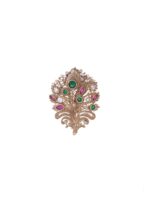 Featuring an intricate leafy motif in gold filigree, this brooch captures the essence of royal gardens. The strategic placement of gemstones adds a pop of color, while the diamonds sprinkle an extra touch of sparkle, elevating its charm.