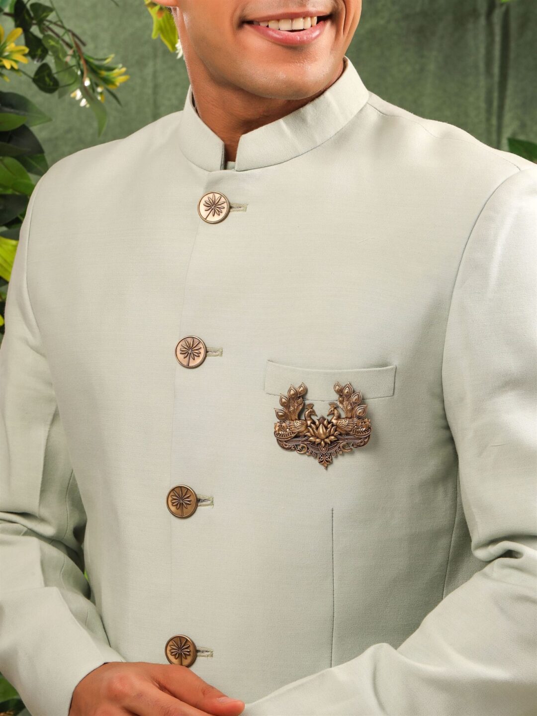 Experience elegance with our Precious Peacock Brooch , a masterpiece that adds a touch of royalty to your attire. Two majestic peacocks perch amidst blooming flowers, their plumes dancing gracefully in the antique gold finish.
