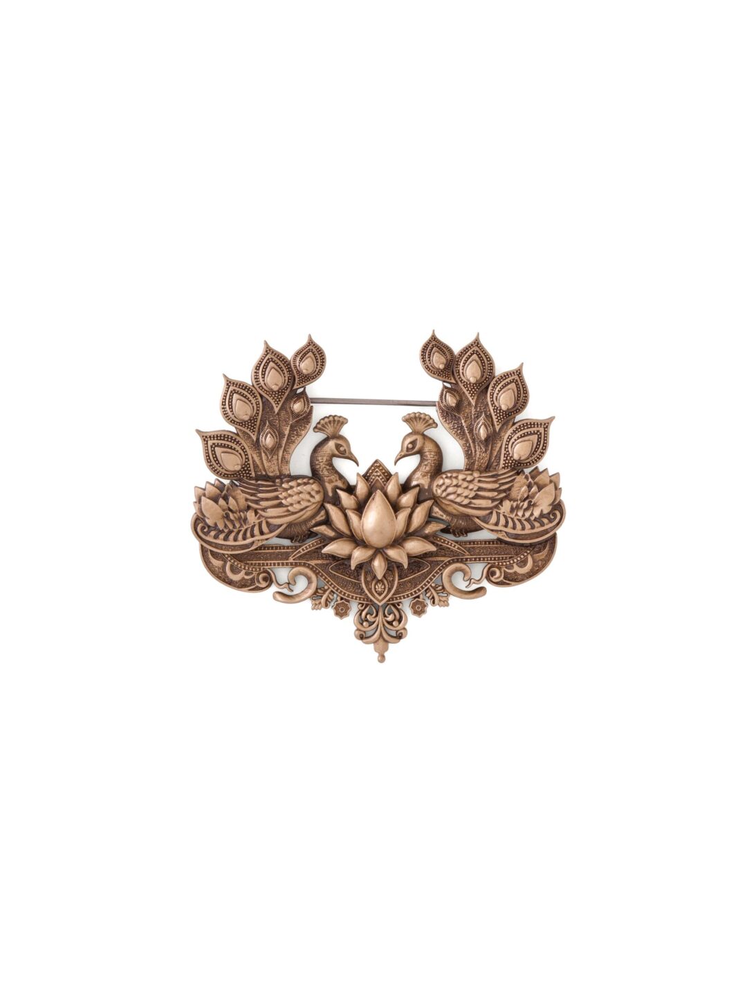 Two exquisitely carved peacocks face each other, surrounded by ornate floral patterns and leaves. The antique gold finish adds vintage charm, highlighting the beautiful engravings that tell the story of nature?s beauty.
