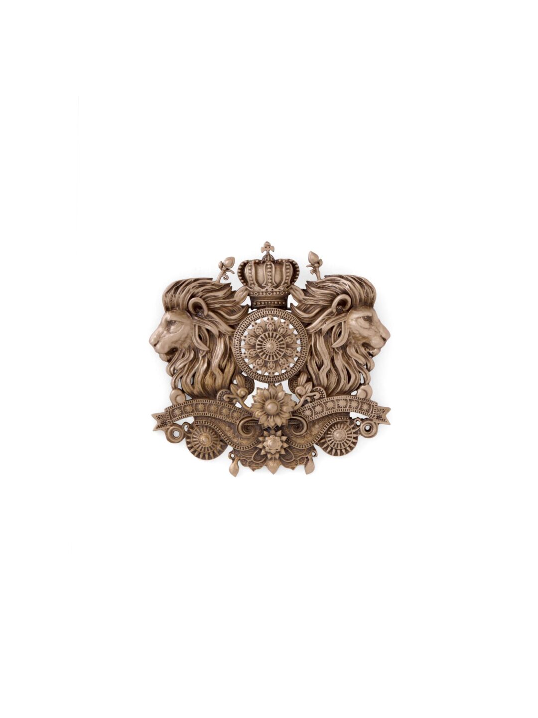The emblem is a marvel of detailed artistry. The lions, with their fierce expressions and flowing manes, are depicted with stunning realism. The crown, adorned with beautiful patterns, adds a touch of royalty. The circular frame, embellished with elaborate designs, enhances the overall magnificence of the piece.