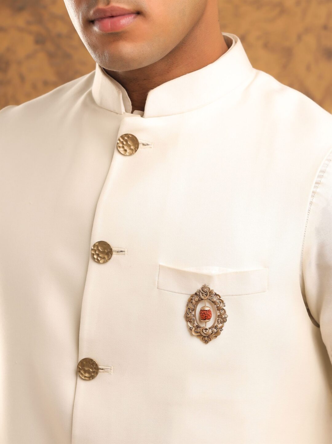 The Rudraksha Brooch features a captivating design inspired by the sacred Rudraksha bead, revered for its mystical properties and divine significance. Crafted with intricate detailing, the brooch captures the essence of the Rudraksha’s natural texture and spiritual symbolism. Its polished finish and refined silhouette add a touch of elegance, while the subtle yet powerful presence of the Rudraksha exudes a sense of spirituality and reverence. The brooch is a versatile accessory, suitable for both formal occasions and spiritual ceremonies. Let the timeless design of the Rudraksha Brooch serve as a reminder of the divine blessings and protection bestowed upon you.
