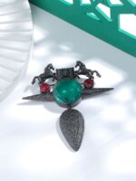 The Brooch design celebrates the untamed allure of horses. Inspired by their grace and vitality, the brooch captures two horses in harmonious motion, embodying their captivating spirit. Intricate detailing reflects their elegant form, while the small red gemstones symbolize their fiery energy. At the center, the magnificent green gemstone mirrors the lush landscapes they roam, serving as the heart of this captivating piece. The brooch is meticulously crafted to capture the essence of horses’ timeless beauty and evoke a sense of wonder and admiration.