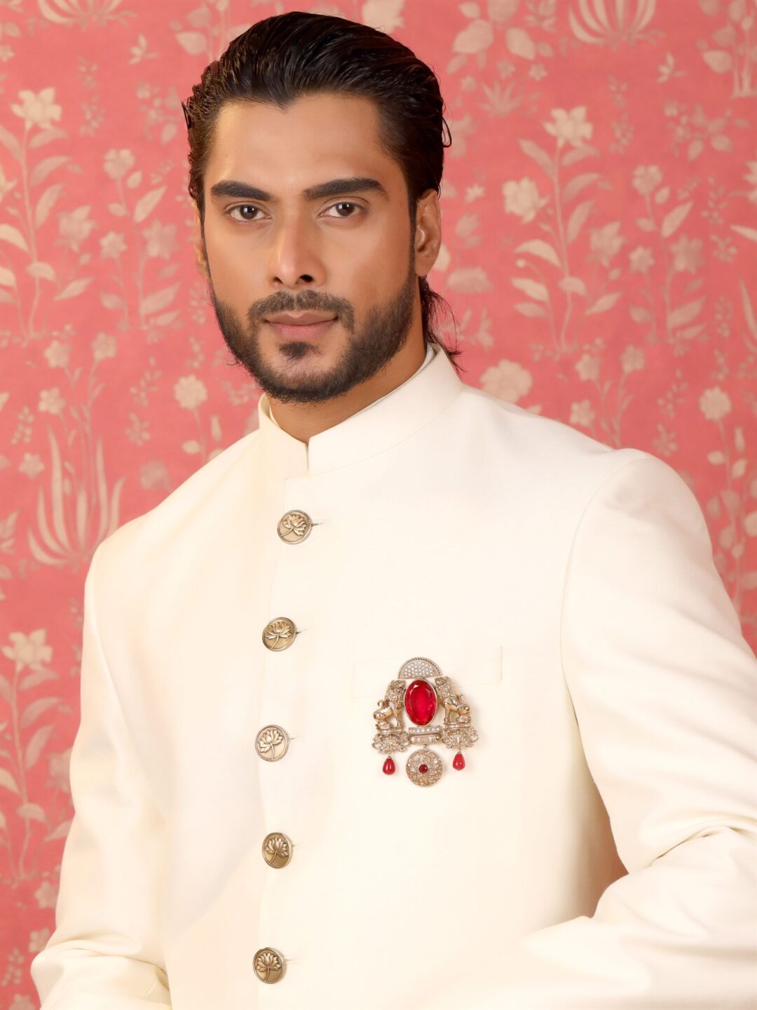 Unleash your inner strength and embody the regal spirit with the “Sher-e-Khaas Brooch” This captivating accessory showcases a meticulously crafted lion design, exuding power and majesty. Adorned with gleaming gemstones that mirror the lion’s fiery gaze, the brooch stands as a symbol of courage and leadership. With unparalleled artistry, it captures the essence of the lion’s legacy, inspiring every modern man to fearlessly conquer life’s challenges and leave a lasting impression like a king.