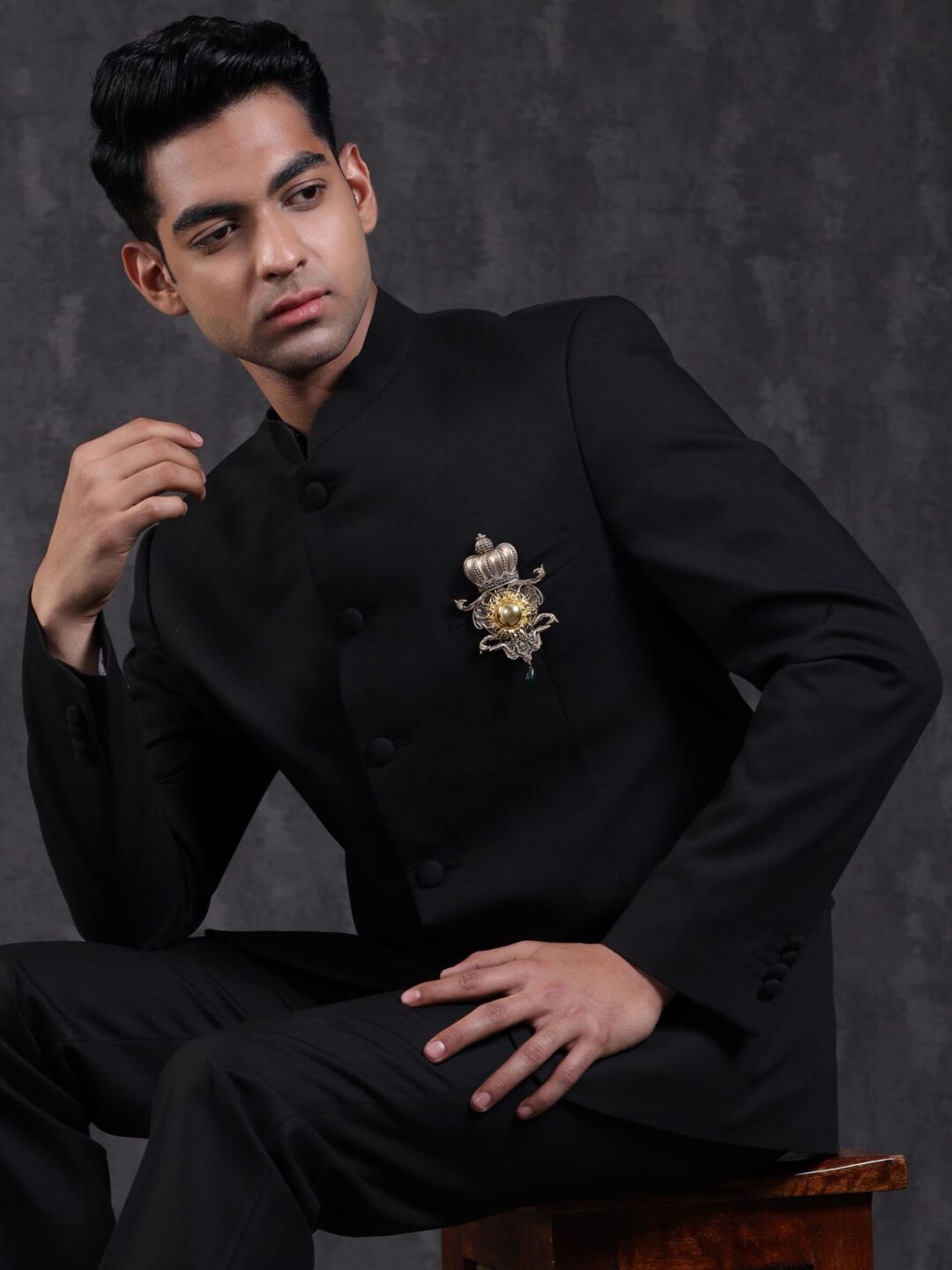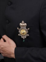 This brooch resembles a wall clock with a pendulum attached to its verge. It’s a modest layout that pulls out the beauty of the light along with time. The crown on the top surely brings out the royal hidden in the wearer.