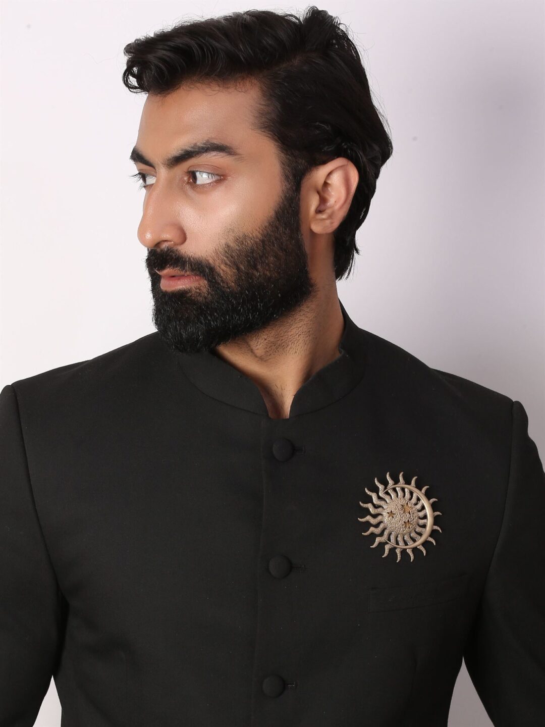 This elegantly crafted sun and moon brooch is intricately designed with different shapes along with minute detailing to give it a vintage look. It brings together a feeling of the brightness of the sun and the serenity of the moon. The sun and moon brooch is specially handcrafted for a charming ceremonial look. Style it with a bandhgala or any jackets at the wedding or casual outings to get a larger-than-life look.