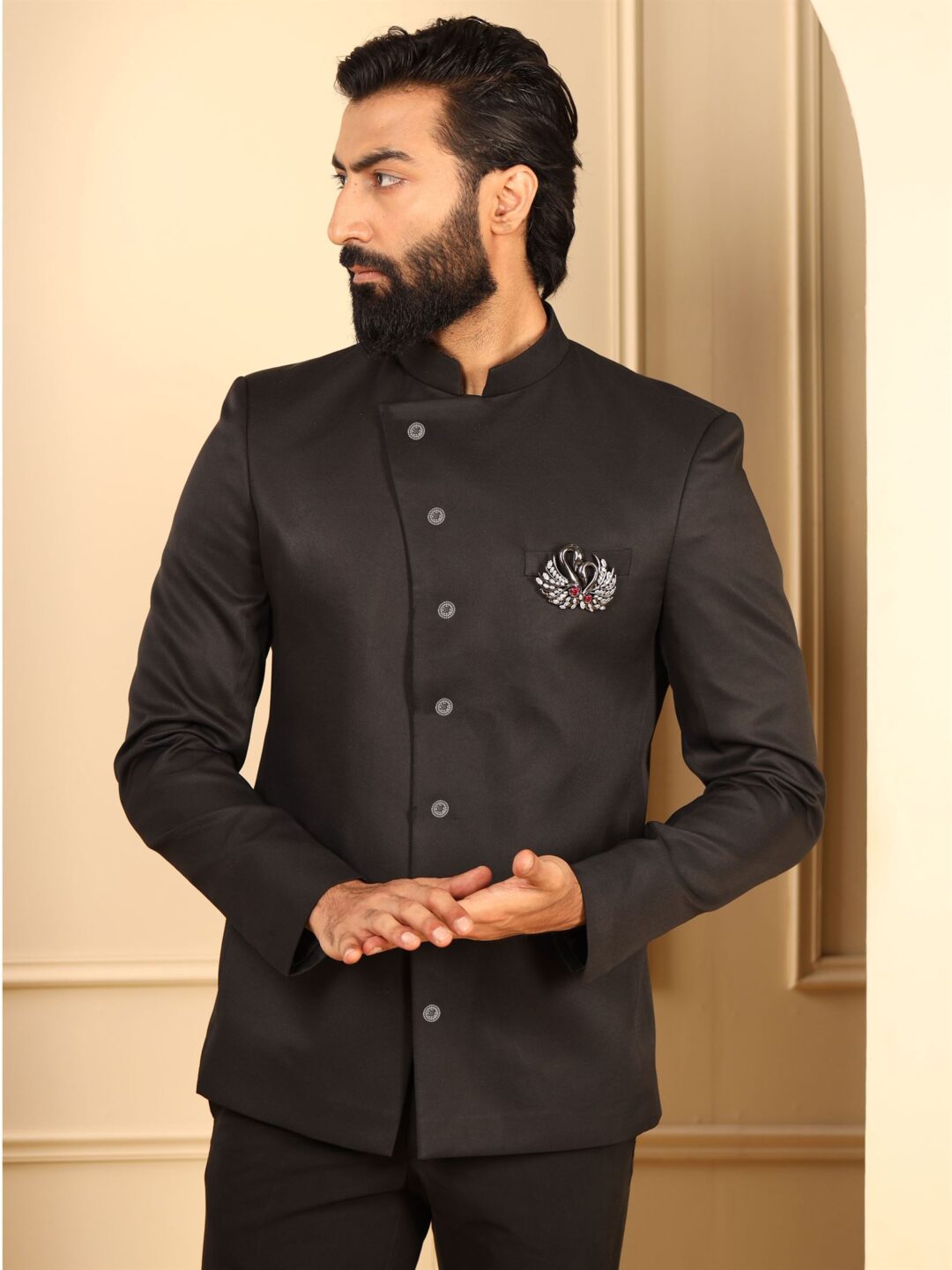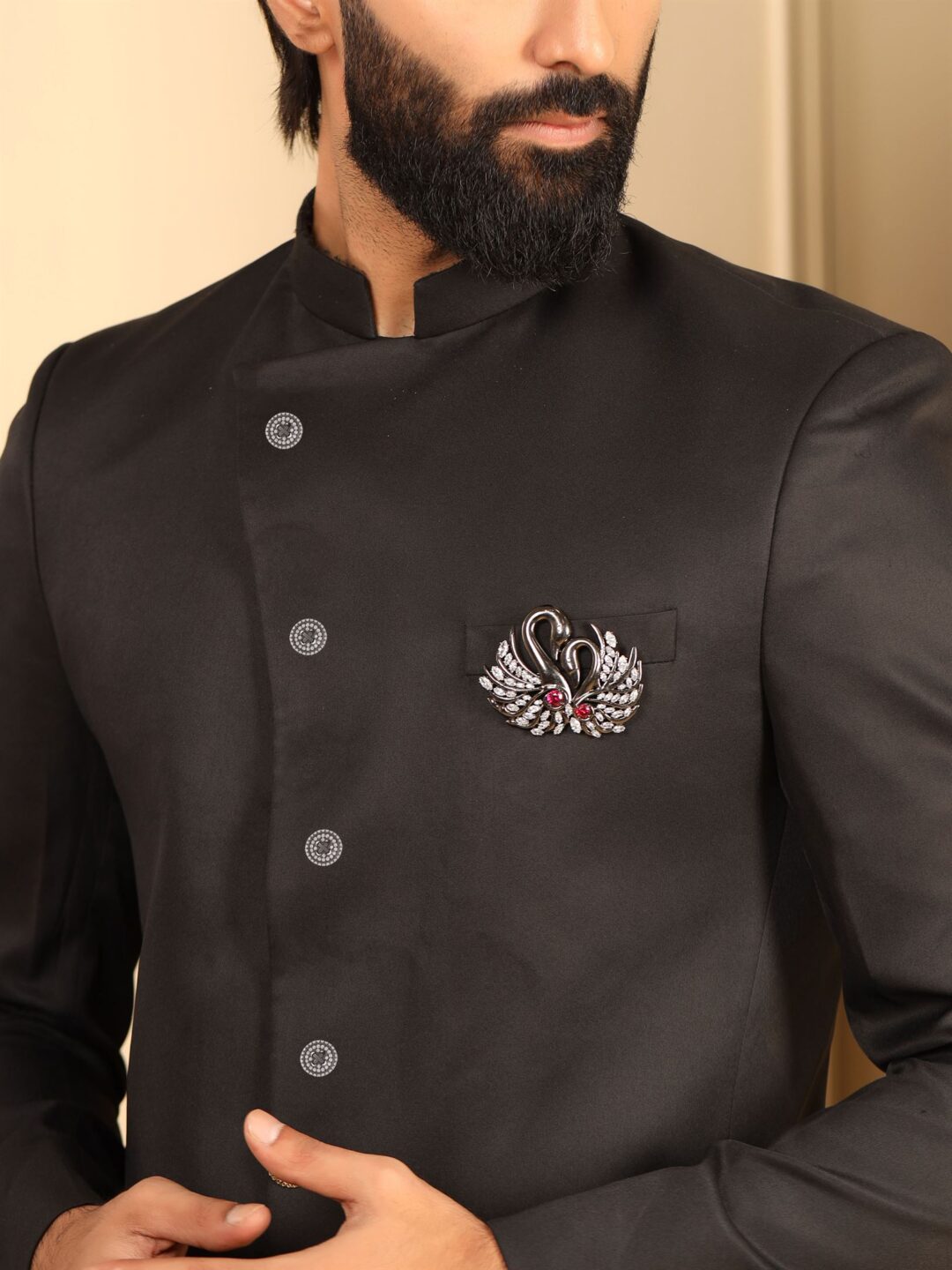 The dual swan design of the brooch is accentuated by the diamond embellishments. This exclusively handcrafted is durable and light in weight. Wear this on any special moment with a bandhgala, indo-western kurta or jacket and create a peaceful and optimistic aura around yourself charming everyone with your personality.