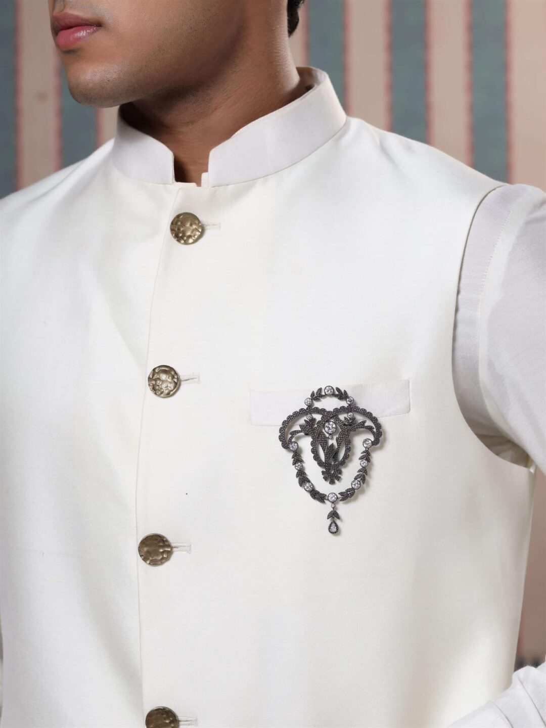 The design of this brooch is a fusion of delicate plant and floral motifs with shimmering studs. The brooch features botanical patterns, carefully complemented by studs that make the design dynamic. The amazing craftsmanship and attention to detail create a visual masterpiece that captures the essence of vintage glamour with a touch of natural wonder.