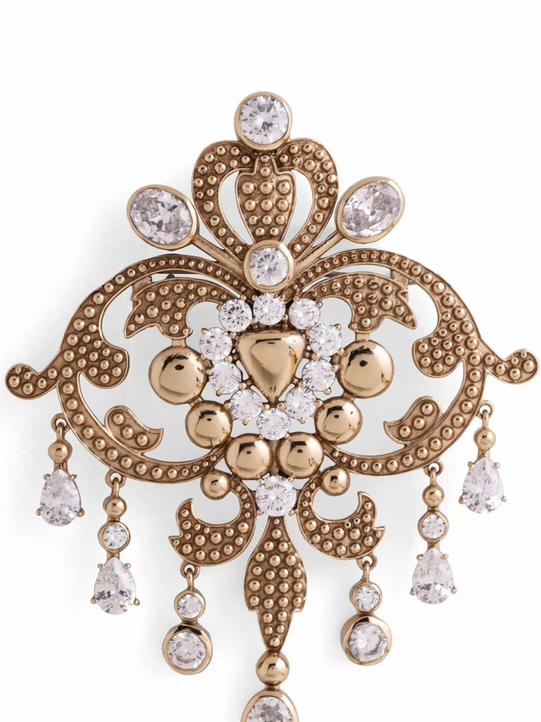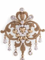 Victorian Vogue Brooch?s inspiration is deeply rooted in the allure of the Victorian era, characterised by its unmatched craftsmanship and love for all things elegant. The incorporation of pink studs and danglers is a tribute to the era’s appreciation for beauty and luxury. We drew inspiration from the grandeur and sophistication of the Victorian era, infusing it with a playful and modern twist. It brings to life the rich past while embracing the vibrancy of the present, celebrating the harmonious blend of tradition and contemporary art.