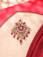 Victorian Vogue Brooch seamlessly combines the enchanting elegance of the Victorian era with the playful charm of pink studs and danglers. This piece celebrates the opulence and refinement of the Victorian era while infusing a touch of modernity. The brooch boasts a rich and sophisticated appearance, making it the perfect addition to enhance your attire and capture attention.