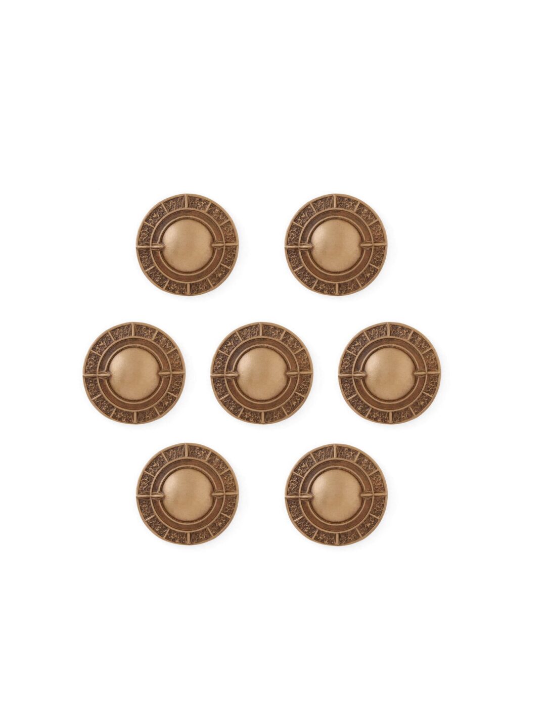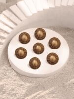 This button takes inspiration from ancient astronomical tools, particularly the astrolabe and compass, both historically significant symbols of navigation, exploration, and knowledge. These instruments were crucial during the great age of discovery and were emblematic of humanity?s quest for understanding the world and the cosmos. Used by scholars and explorers alike, the circular form evokes the timelessness of celestial navigation and the mapping of unknown territories, whether land or sea.