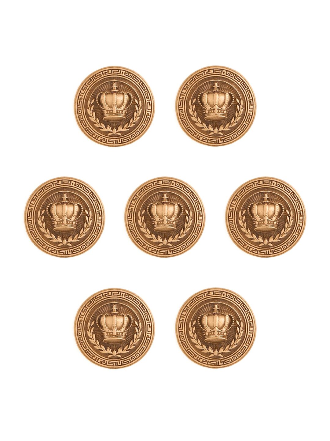 Embrace regal elegance with our exquisite button featuring a dimensional crown design. Crafted from gleaming gold-tone metal, this accessory adds a touch of majesty to any garment, symbolizing power and authority.