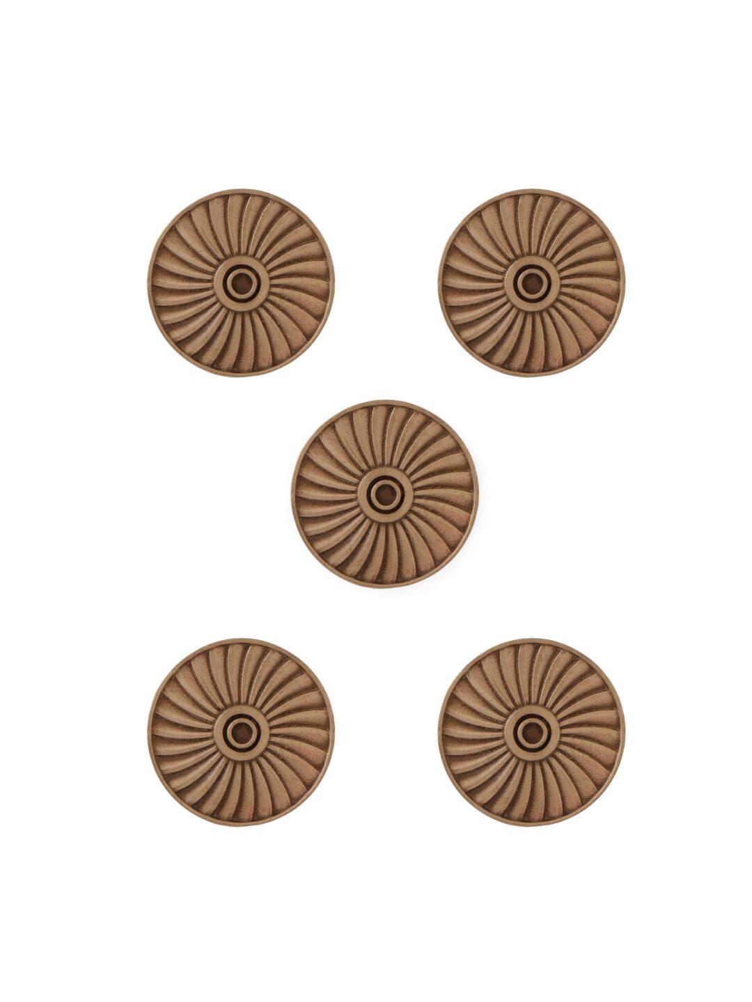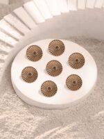 The design features a radiating pattern with meticulously carved lines that emanate from the center, creating a harmonious circular flow. The central dot adds a focal point, enhancing the overall symmetry and balance. The grooves and textures give the button a tactile depth, while the simplicity of the radial design evokes timeless elegance and understated sophistication.