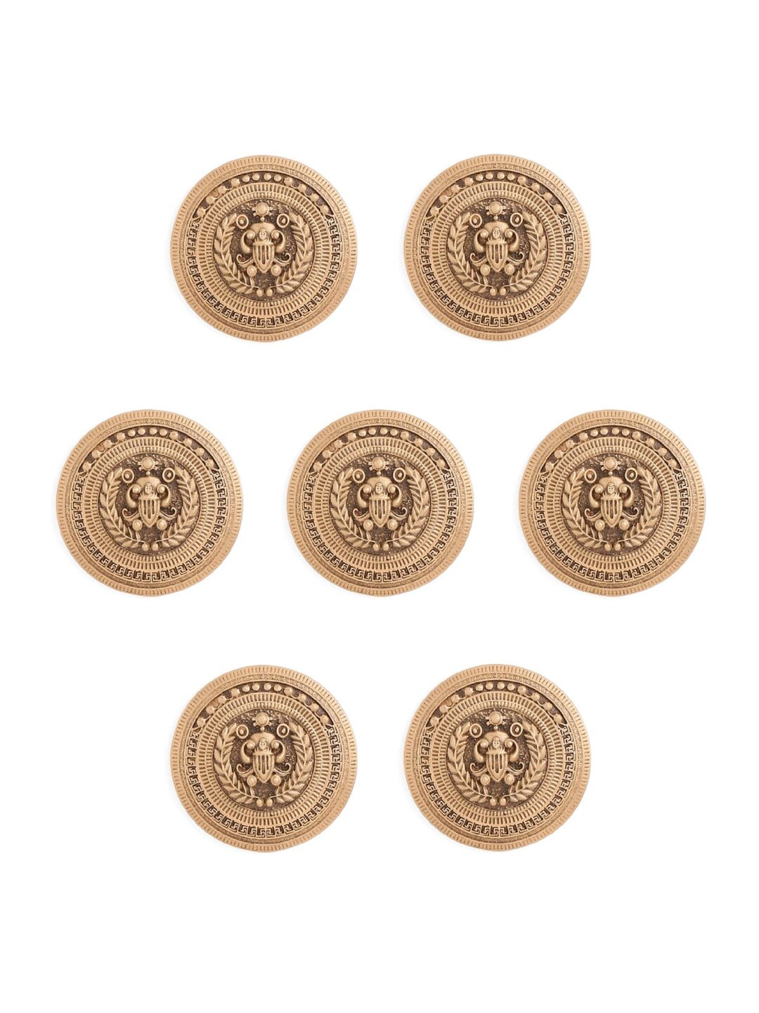Add a touch of antique elegance with our Vintage Vibe Button. Featuring a central emblem and laurel wreath design, this accessory pays homage to the grandeur of the Victorian era.
