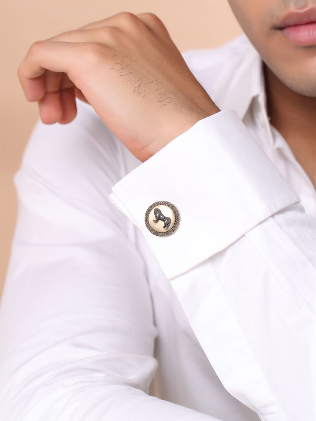 The Leo King Cufflinks are meticulously crafted with a captivating lion motif at the center. Encircled by intricate details reminiscent of a lion’s majestic mane, these Cufflinks exude an aura of regal splendor. The design is a harmonious blend of strength and sophistication, marrying the lion’s fierce image with modern craftsmanship to create a striking addition to your wardrobe. Let these Cufflinks empower your fashion choices.