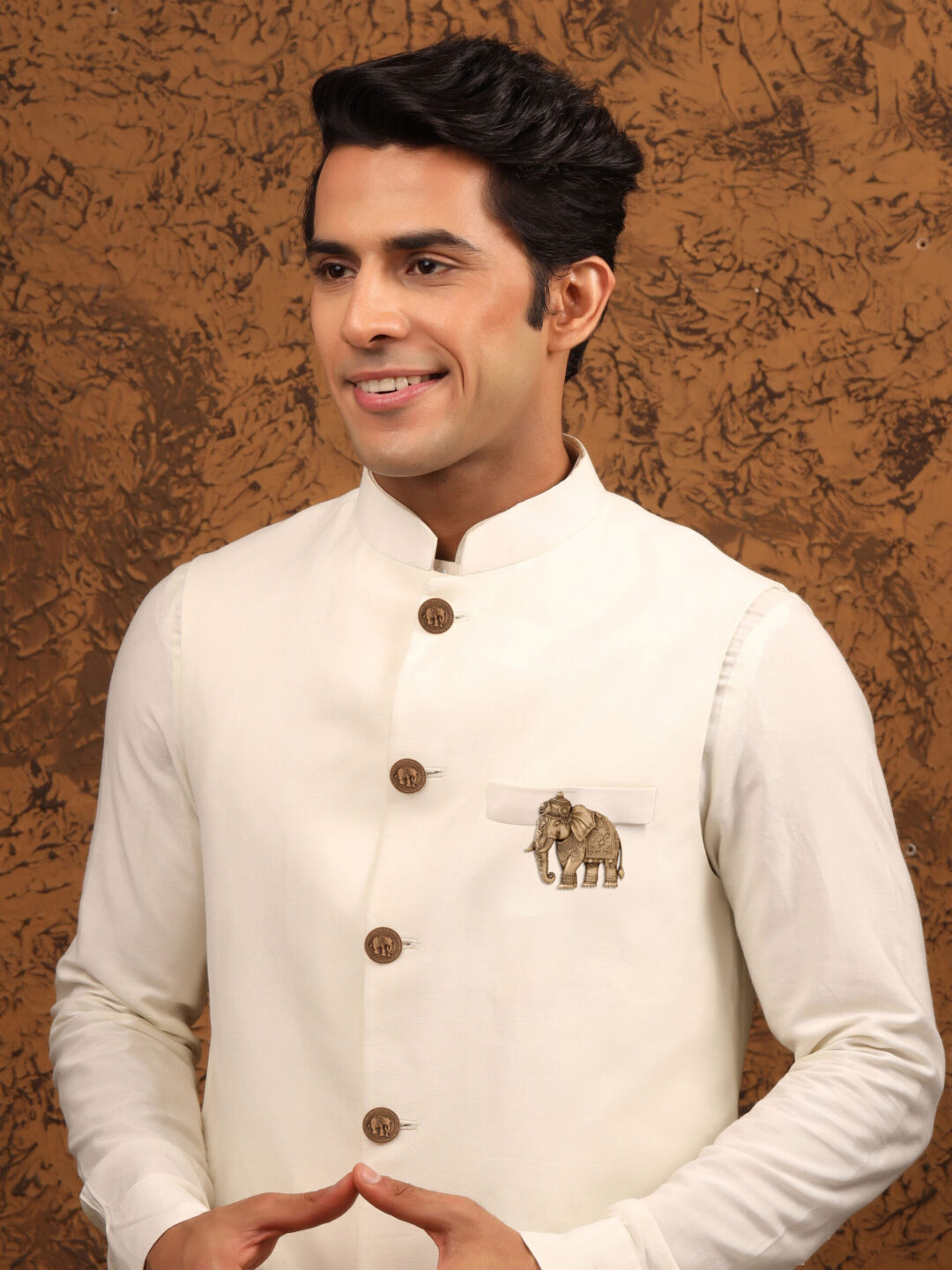 Step into the grandeur of tradition with Empire Walk ? a meticulously crafted gift set featuring an opulent elephant brooch and 13 matching ornamental buttons. The design draws inspiration from ceremonial processions and ancient royal entourages, symbolizing strength, wisdom, and honor. With its intricate detailing and antique finish, this set is an artistic statement for jackets or bandhgalas, making it an exceptional gift for someone who carries heritage with pride and elegance in spirit.