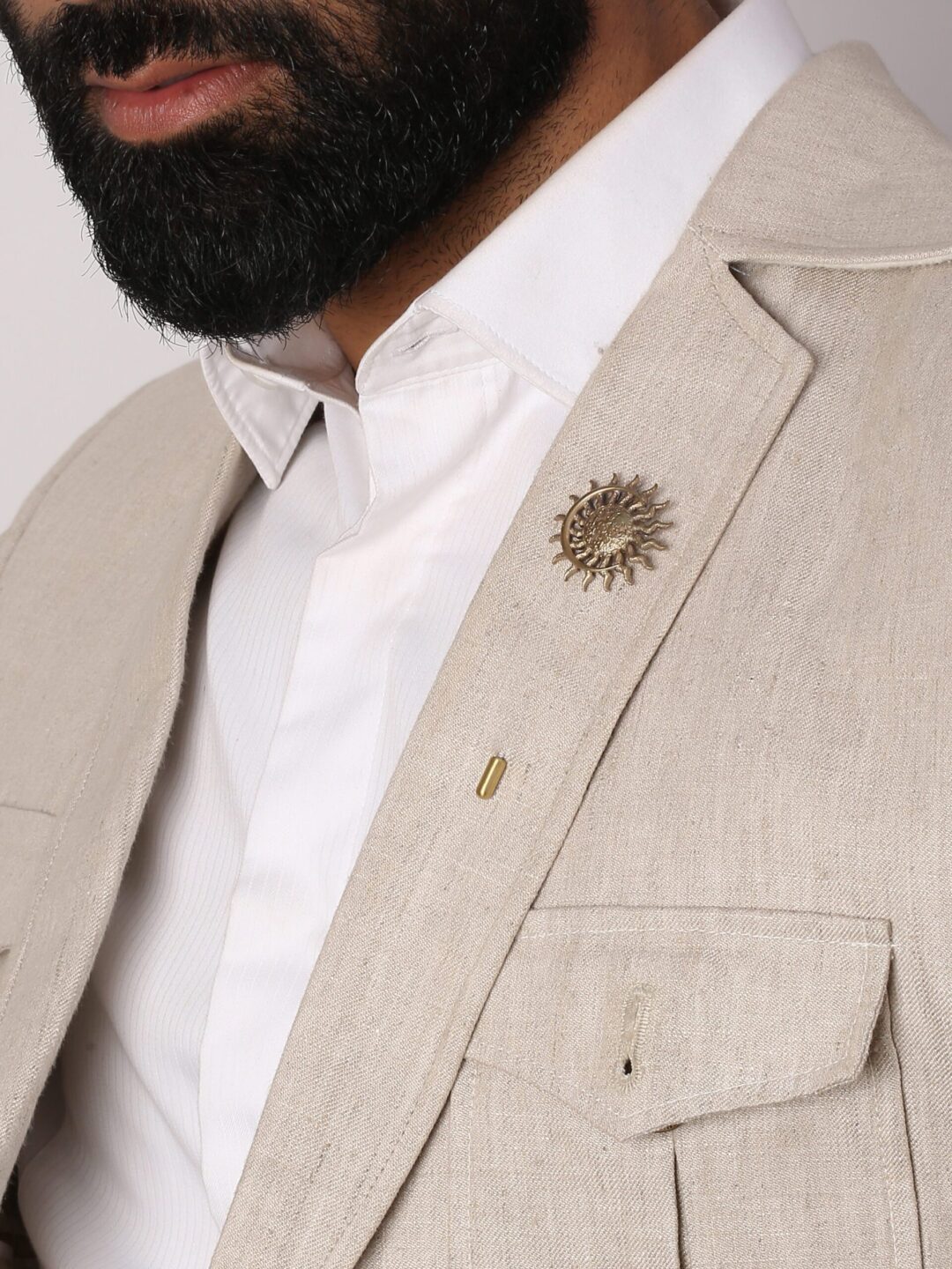 The sun and moon lapel pin is a definition of exemplary art. This hand crafted magnificent piece of jewelry give out magical vibes. Its detailed design that precisely depicts the vibes of hope that sun and moon bring. It is a must have accessory