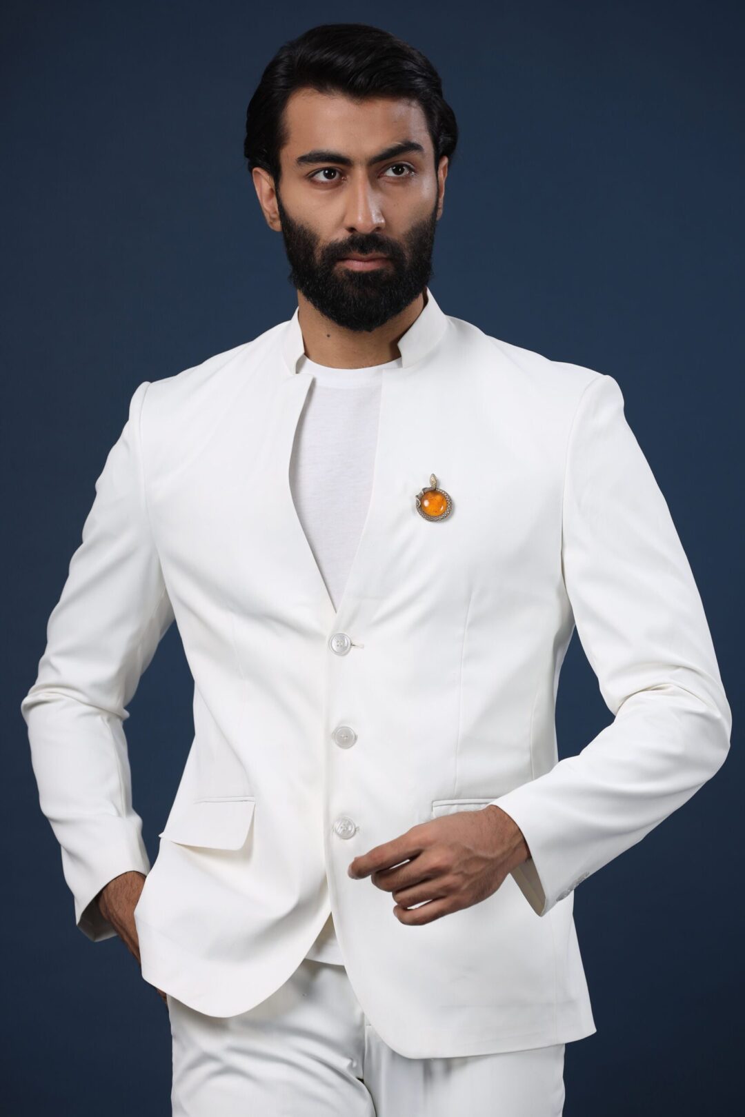 Aspire is a dreamy white jacket with Mandarin collars that is stitched with perfection by Cosa Nostraa’s expert designers. Paired with the Nagmani brooch, the Aspire jacket is a statement of pride and calmness that a composed personality carries.