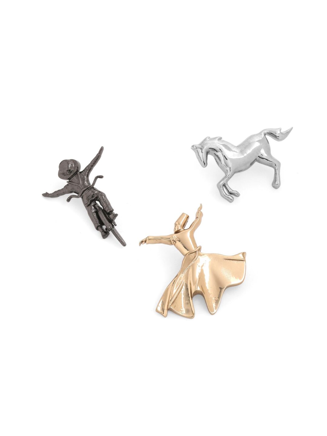 The design journey of the Pure Bliss Gift Set mirrors the spontaneity of joy. The Magician brooch, with its mystic charm, represents the enchantment found in unexpected happiness. The Stallion brooch captures the raw exuberance of a free-spirited gallop, a visual ode to the joy of unbridled movement. The Joker Cycling brooch, with its whimsical portrayal, adds a playful dimension, reminding us of the laughter that fuels our happiest memories. The intentional interplay of symbols and forms weaves together a narrative of joy that is dynamic, magical, and endlessly surprising.