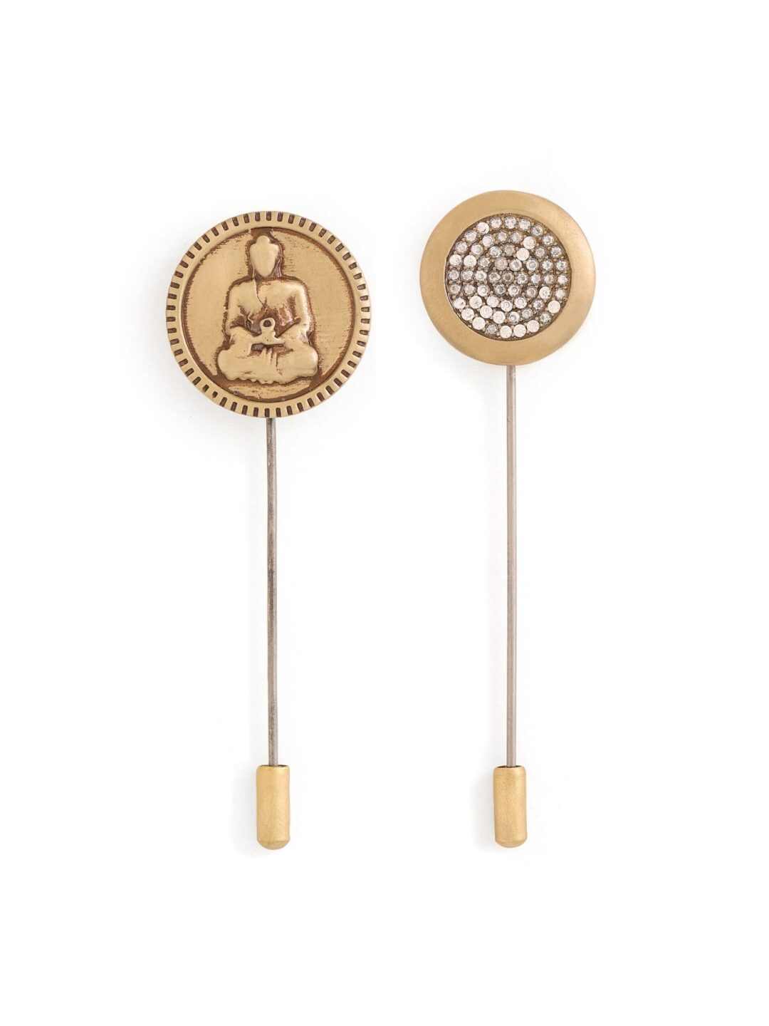 Introducing our exquisite Gift Set, meticulously crafted from premium brass to add an aura of elegance and sophistication to any ensemble. Each set includes two captivating lapel pins, featuring a serene Buddha motif and a dazzling studded round motif. The Buddha motif embodies tranquility and wisdom, while the studded round motif adds a touch of glamour and refinement. Handcrafted with precision and attention to detail, these lapel pins are versatile accessories that effortlessly elevate any outfit, whether it’s for formal events, business meetings, or casual gatherings.