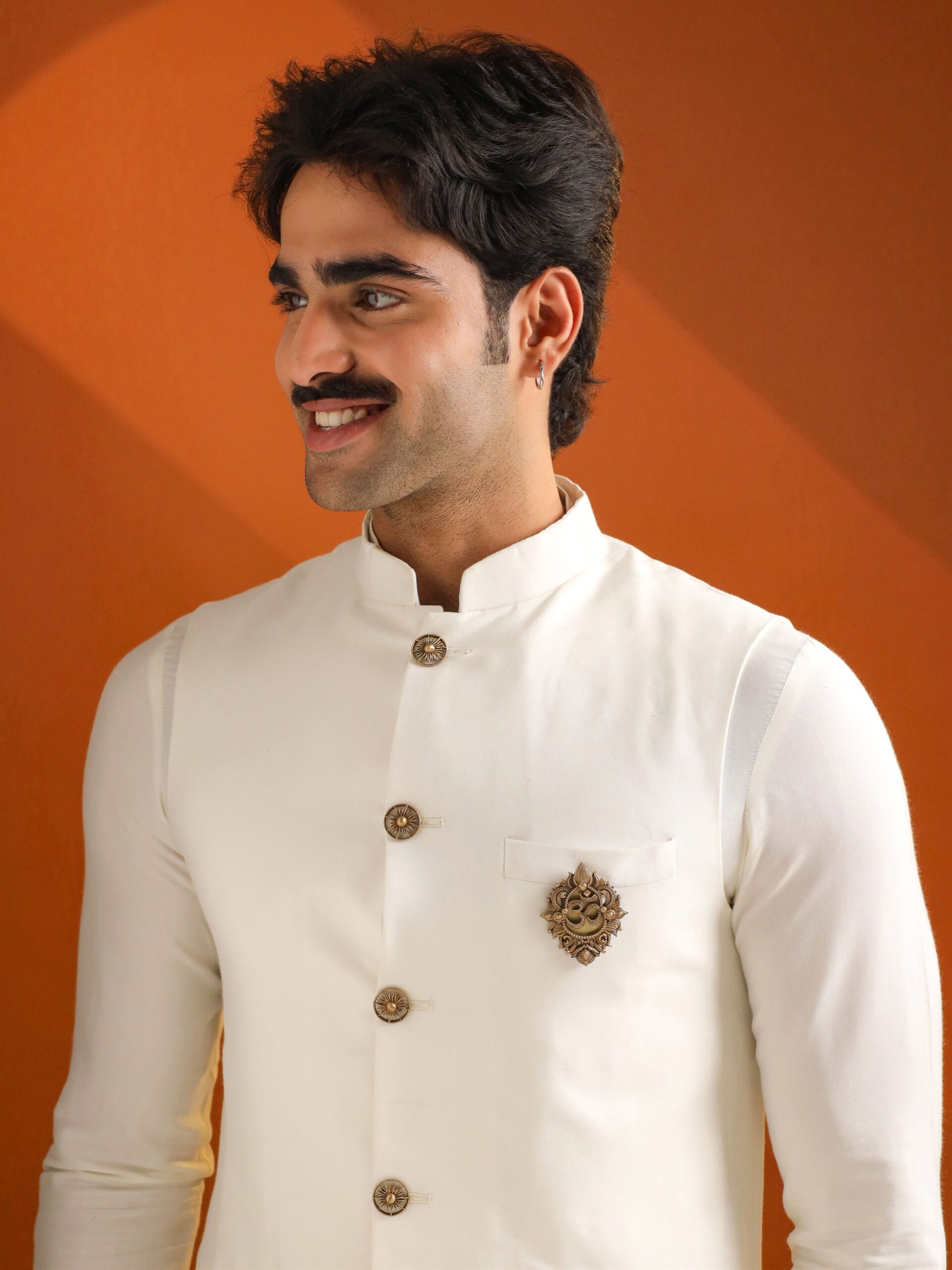 This brooch is a divine emblem that reverberates with the sacred chant of devotion to Lord Shiva. Etched with the auspicious symbol of Om, this brooch encapsulates the essence of spiritual enlightenment and divine grace. Crafted with precision and reverence, it serves as a sacred adornment for Mahashivratri festivities and spiritual ceremonies. Made from premium materials, it exudes elegance and spirituality, making it a perfect accessory for devotees seeking blessings from Lord Shiva and embracing the divine energy of the universe.