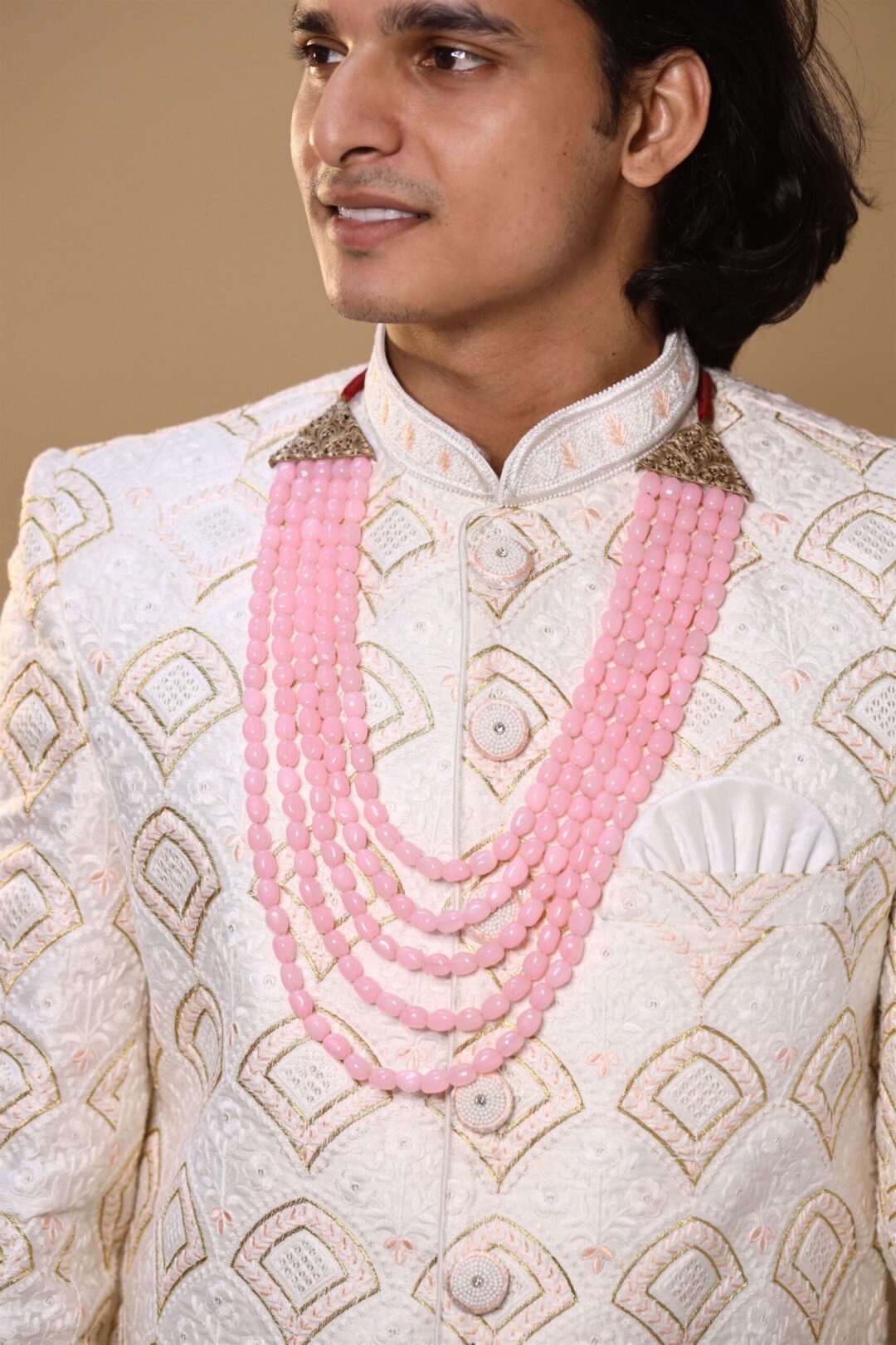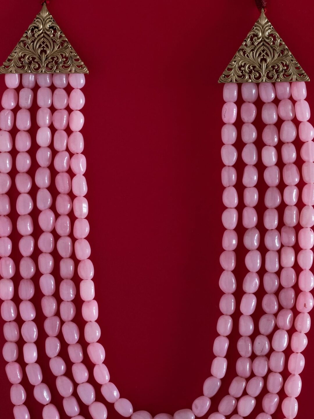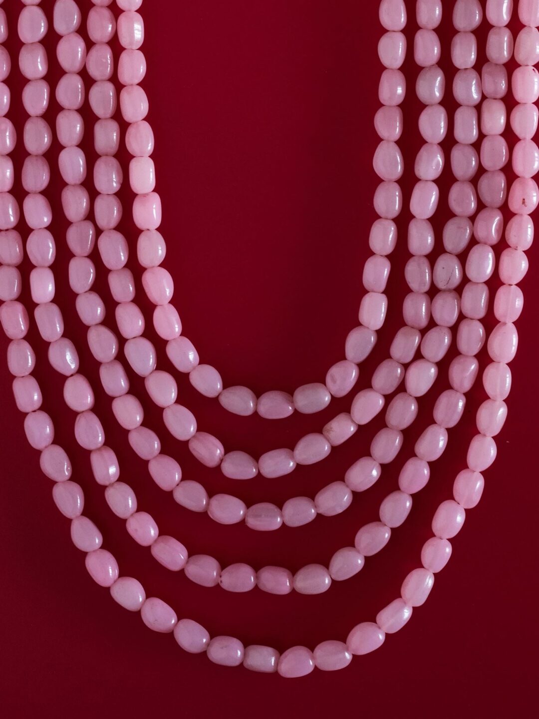 The Elegant Pink Mala is a beautiful string of beads made from high-quality pink stones. The polished stones are strung together with a durable cord and finished with a tassel. This mala is designed to be used during meditation or as a stylish and meaningful accessory.