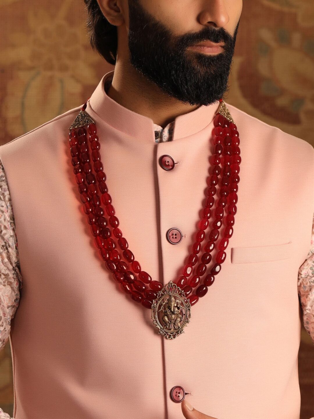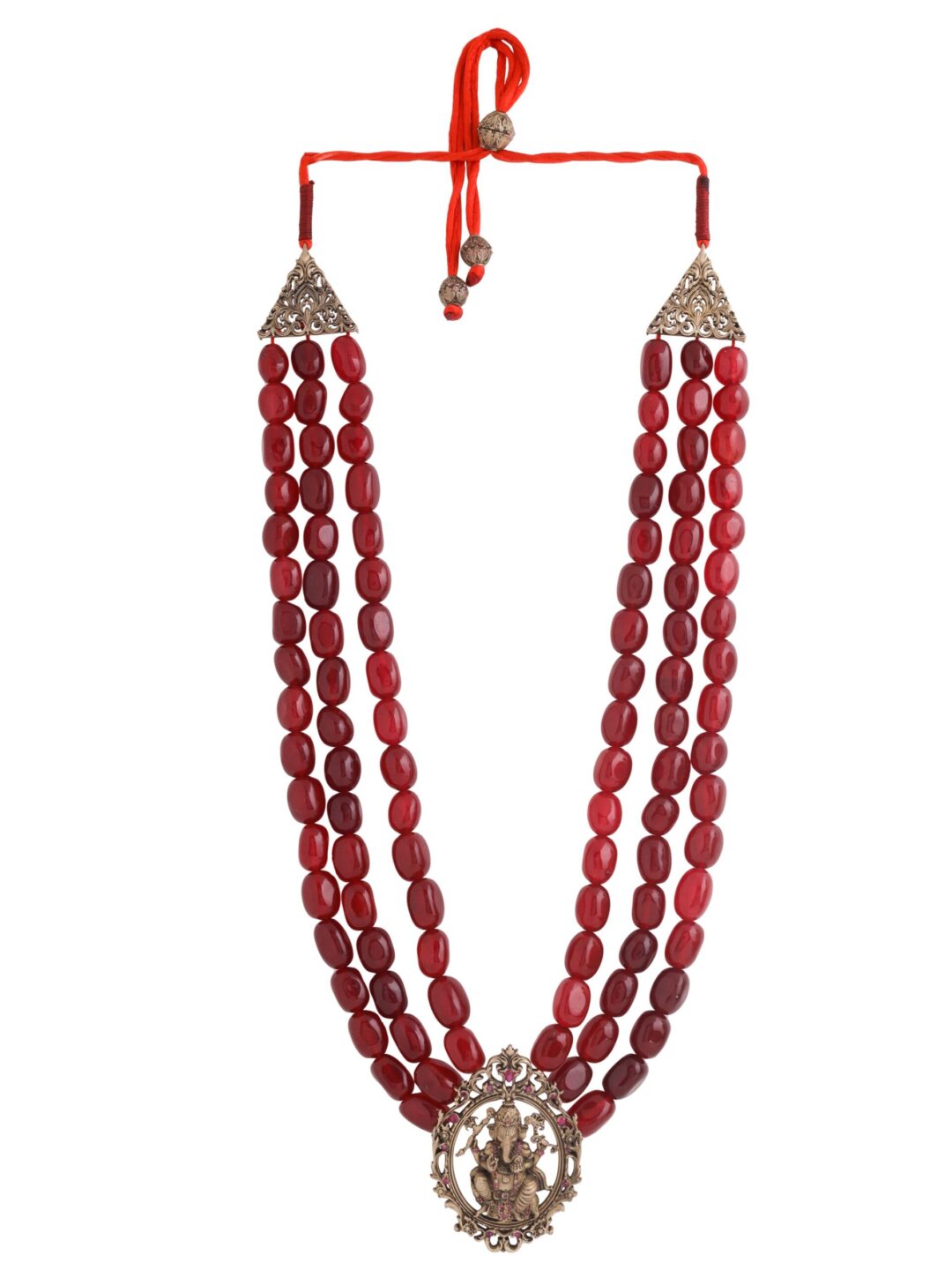 The Red Ganesha Mala is designed to showcase the vibrancy and spiritual essence of red beads. The deep red color of the beads gives a warm and welcoming look, while the hand-carved Ganesha pendant made from brass adds a touch of spirituality and elegance to the overall design.