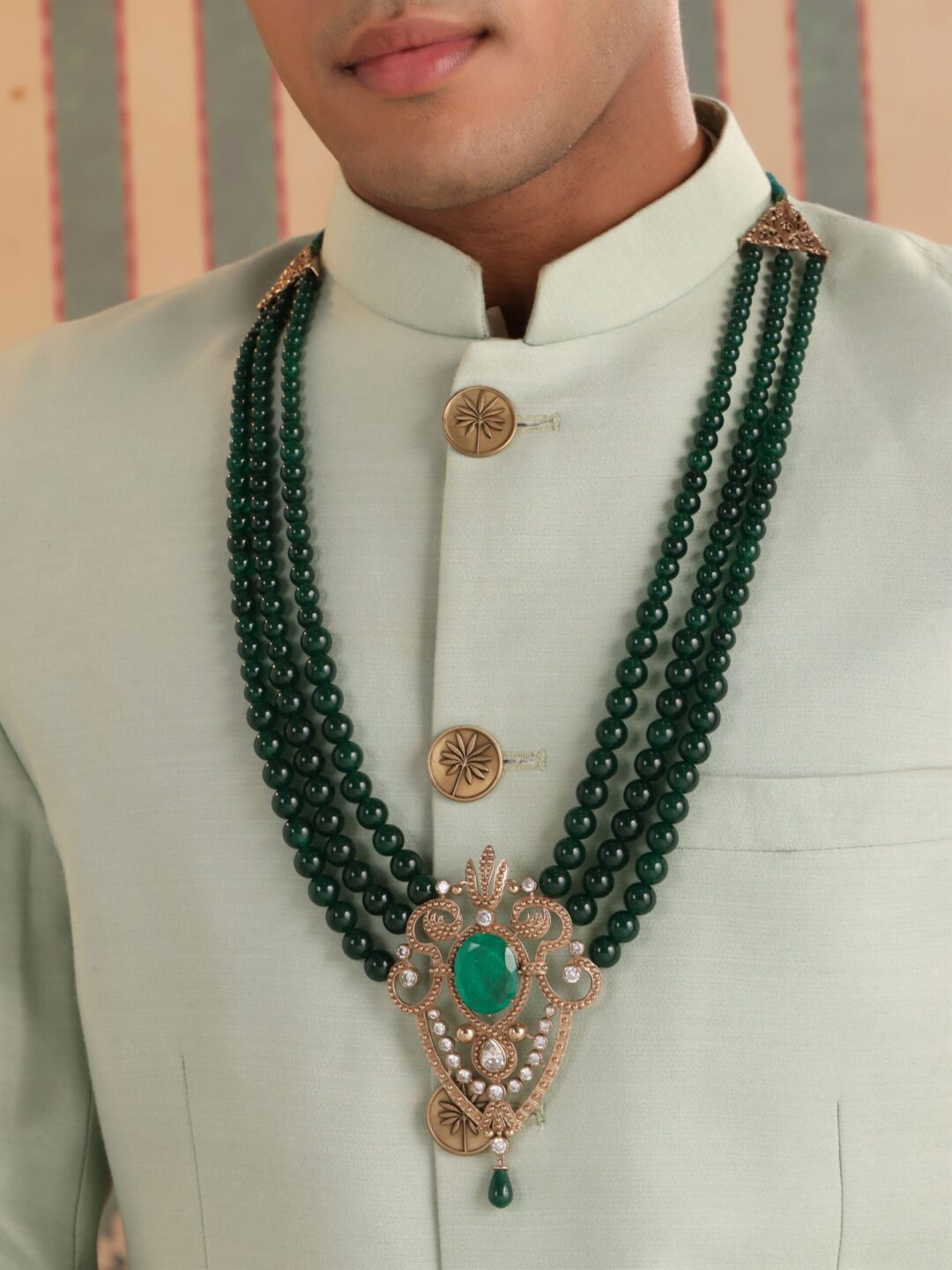 The Verdant Harmony Mala weaves a story of subtle beauty, where each bead, carefully chosen, contributes to a harmonious composition. Eschewing overt embellishments, it embraces simplicity, allowing the greens to emerge as the true stars. The design is a testament to the notion that beauty often lies in the understated.