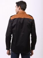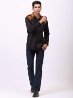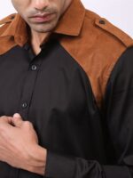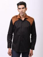 The Tan High Shirt is for the debonair in you. Inspired by the Russian Imperial army the shoulder strap, panelling on the shoulder and striking contrast between the exquisite black & frivolous tan switches between business & casual effortlessly. Wear a jacket or donīŋŊt, your look will be a 100% complete with this shirt.
