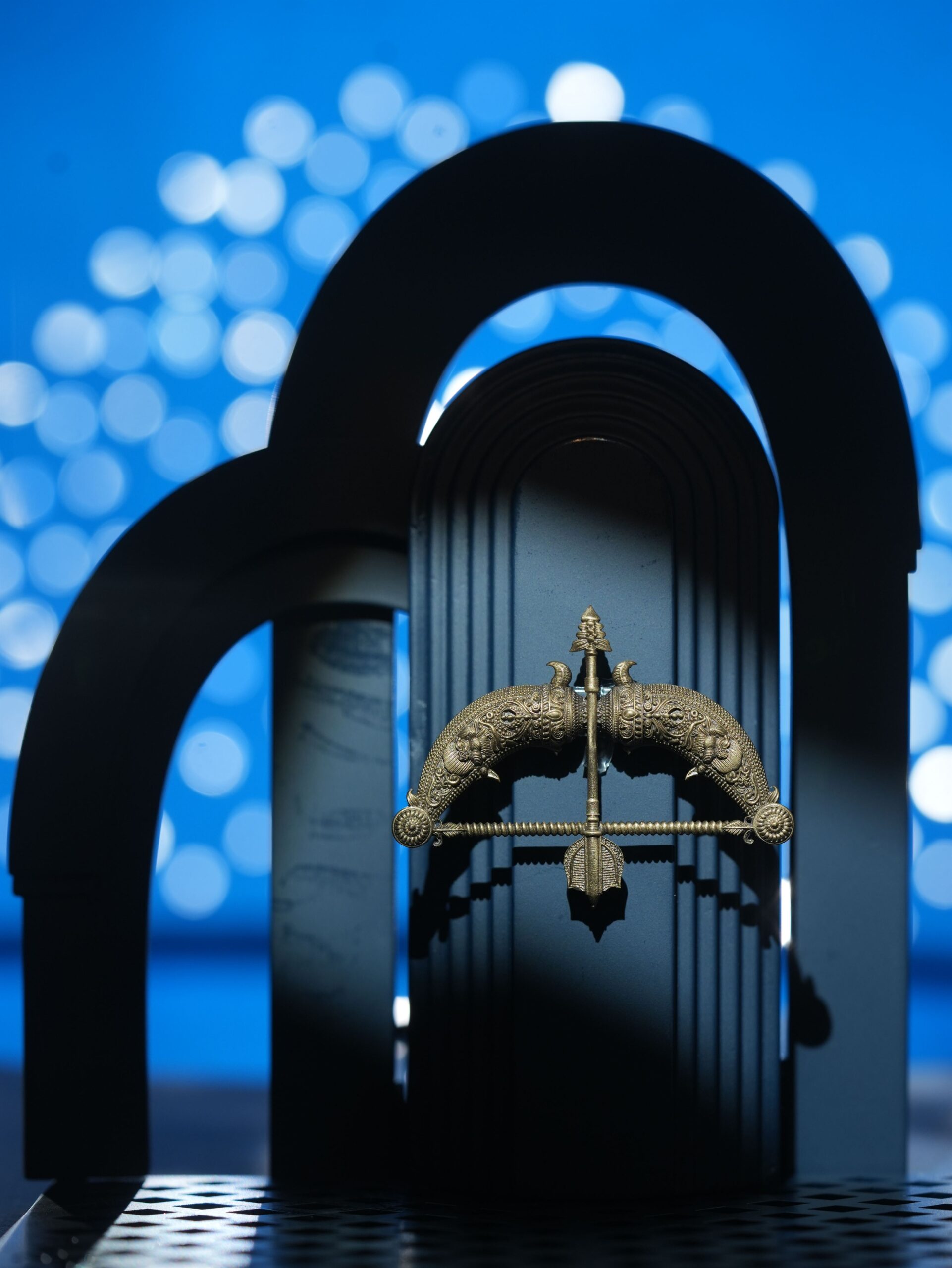Channel the spirit of a warrior with the Ram Dhanush Brooch, a masterpiece of craftsmanship inspired by ancient tales of heroism and strength. Featuring a detailed bow and arrow design adorned with ornate motifs, this lightweight brooch captures the essence of bravery and precision. Perfect for coats and jackets, it adds a bold, mythic charm to your ensemble, making it a symbol of courage and timeless elegance. Wear it to embody the relentless pursuit of your goals, just as a true archer never misses the mark.