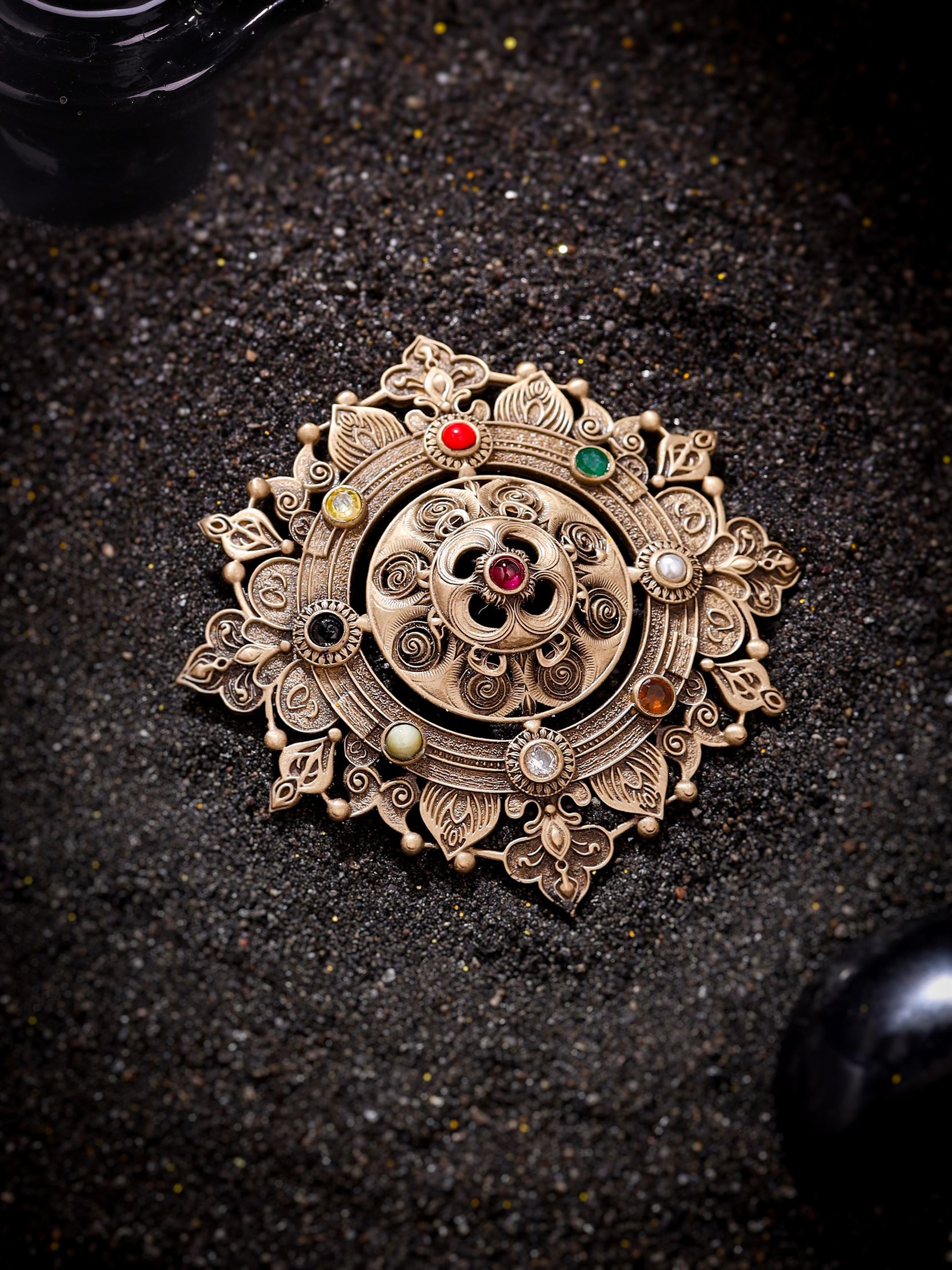 As you pin this brooch onto your favorite outfit, you?ll feel the weight of quality and the touch of luxury. The golden petals, with their delicate curves and edges, are like whispers of ancient stories told in hushed tones, while the gemstones are like stars that have found their way to your world, twinkling with delight.