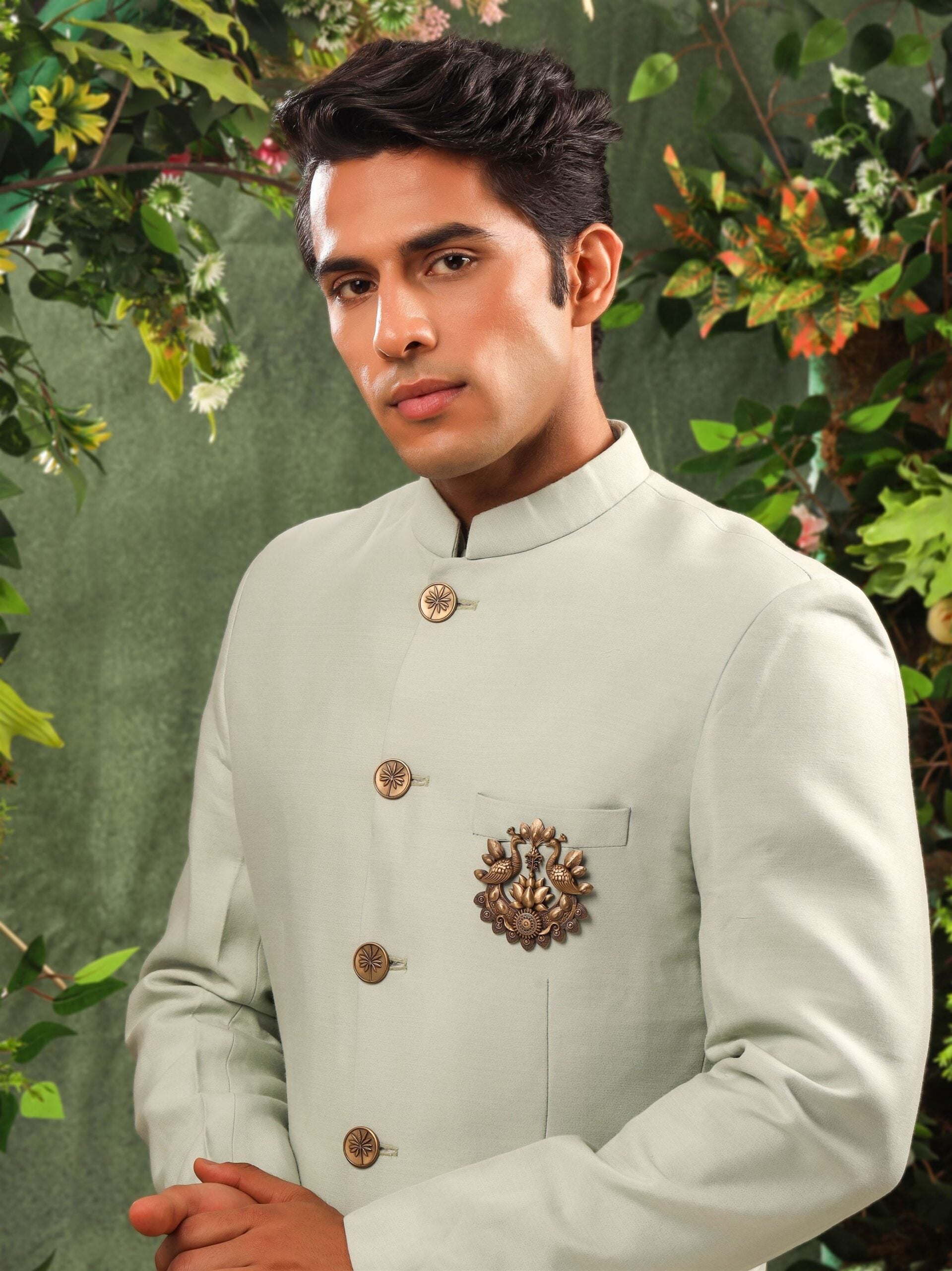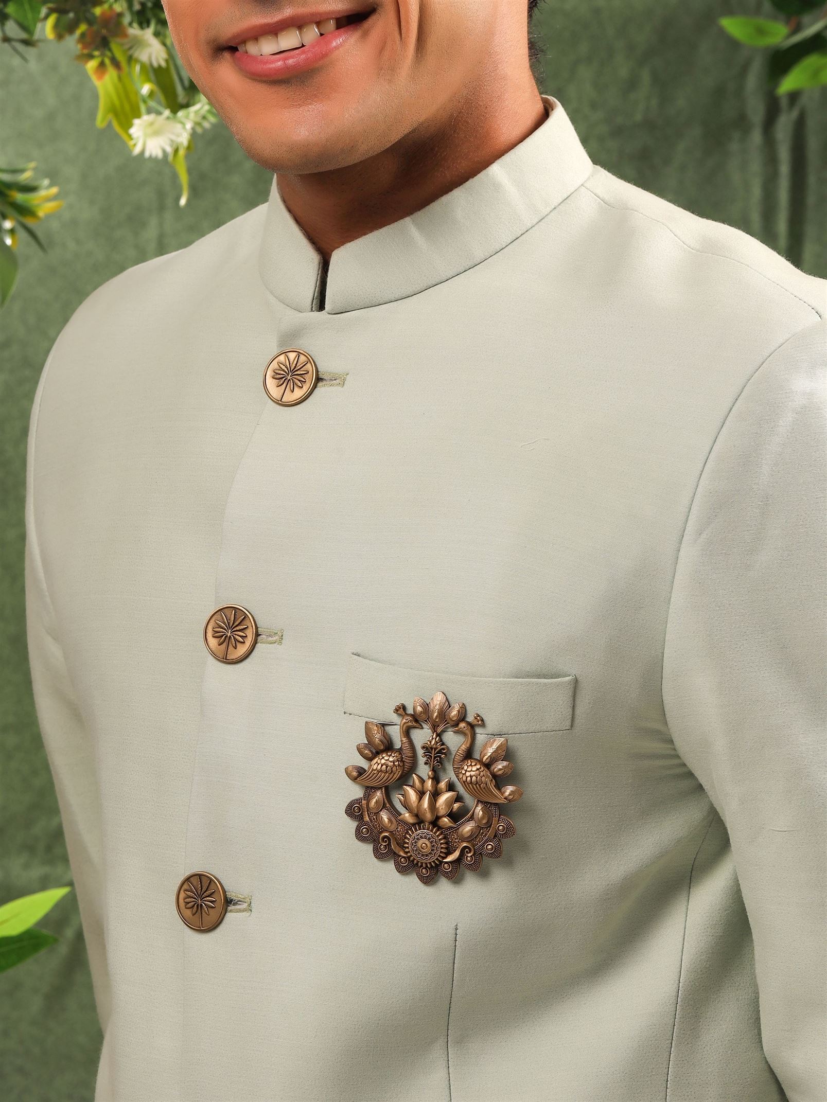 The Pride of Forests brooch is a tribute to nature's wonders. Picture two majestic peacocks gracefully perched beside a blooming flower. This brooch, made with gold-tone metal, adds a touch of luxury to any outfit. Try it out and feel the elegance! Product Dimension : 8X7.5 CM Weight : 58.4 gms Pack Details : 1 Brooch